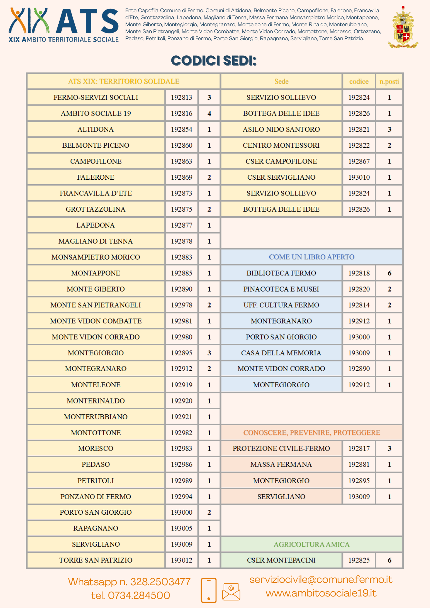 L’ATS XIX – Comune di Fermo è coinvolto con n. 78 posti complessivi, così suddivisi: